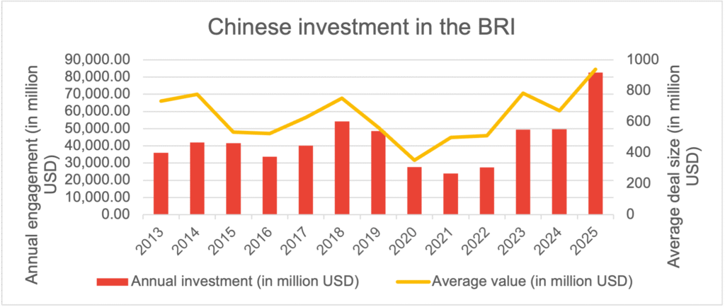Çinin “Bir Kəmər, Bir Yol” təşəbbüsü çərçivəsində xarici investisiyaları ötən il 2024-cü illə müqayisədə təxminən 62 faiz artaraq 85 milyard dolları keçsə də, sanksiya altında olan iki ölkə — özlərini Çinin ən vacib tərəfdaşları hesab edən Rusiya və İran — bu investisiyalardan demək olar ki, heç bir pay almadı. “Yaşıl Maliyyə və İnkişaf Mərkəzi”nin yeni