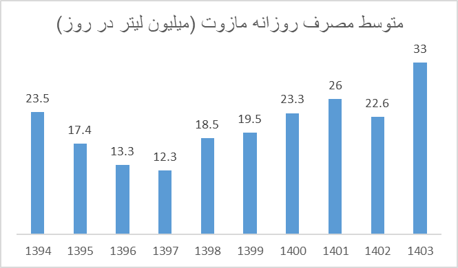 فروش مازوت به تفکیک مراکز فروش شرکت ملی پخش فرآورده‌های نفتی (میلیون لیتر در روز)