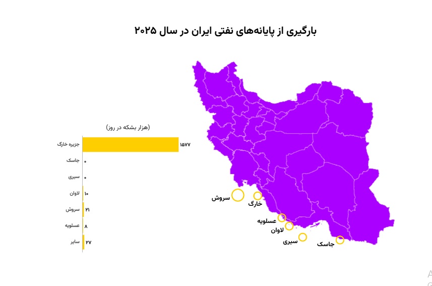 آمارهای شرکت اطلاعات کالایی کپلر نشان میدهد که در سال ۲۰۲۵، حدود ۹۵ درصد نفت صادراتی ایران از بندر خارگ بارگیری شده است. خارگ یکی از حساسترین نقاط اقتصادی کشور است، جزیرهای کوچک و مرجانی در ۳۵ کیلومتری ساحل گناوه بوشهر که بزرگترین پایانه نفتی ایران را در خود جای داده است.